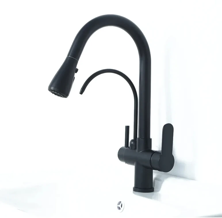 Homary Water Filter Kitchen Faucet Pull Out Faucet in Matte Black Swirling Faucet Solid Brass