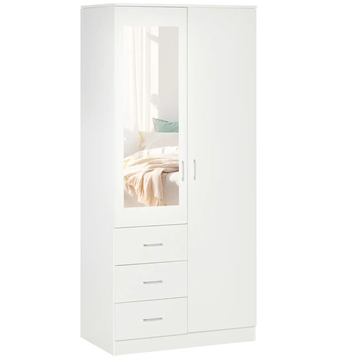 HOMCOM 2 Door 3 Drawer Mirrored Wardrobe with Rail, Modern Clothes Storage Cupboard with Mirror, Drawers and Adjustable Shelves for Bedroom, 80 x 50 x 180 cm, White