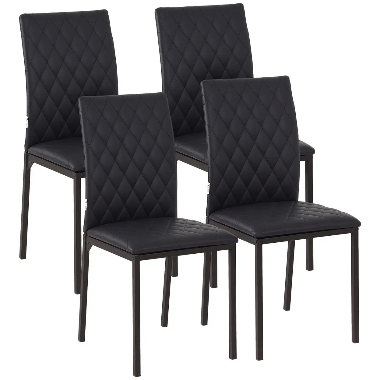 These HOMCOM dining chairs feature a sleek and simple style with a touch of flair. Each chair is upholstered in PU leather with a diamond-shaped pattern for added elegance. The cushioned seat provides comfort, while the high back offers support. The powder-coated steel legs are sturdy, ensuring you are fully supported while seated. This set of four chairs will create a cohesive look in your dining or kitchen area.