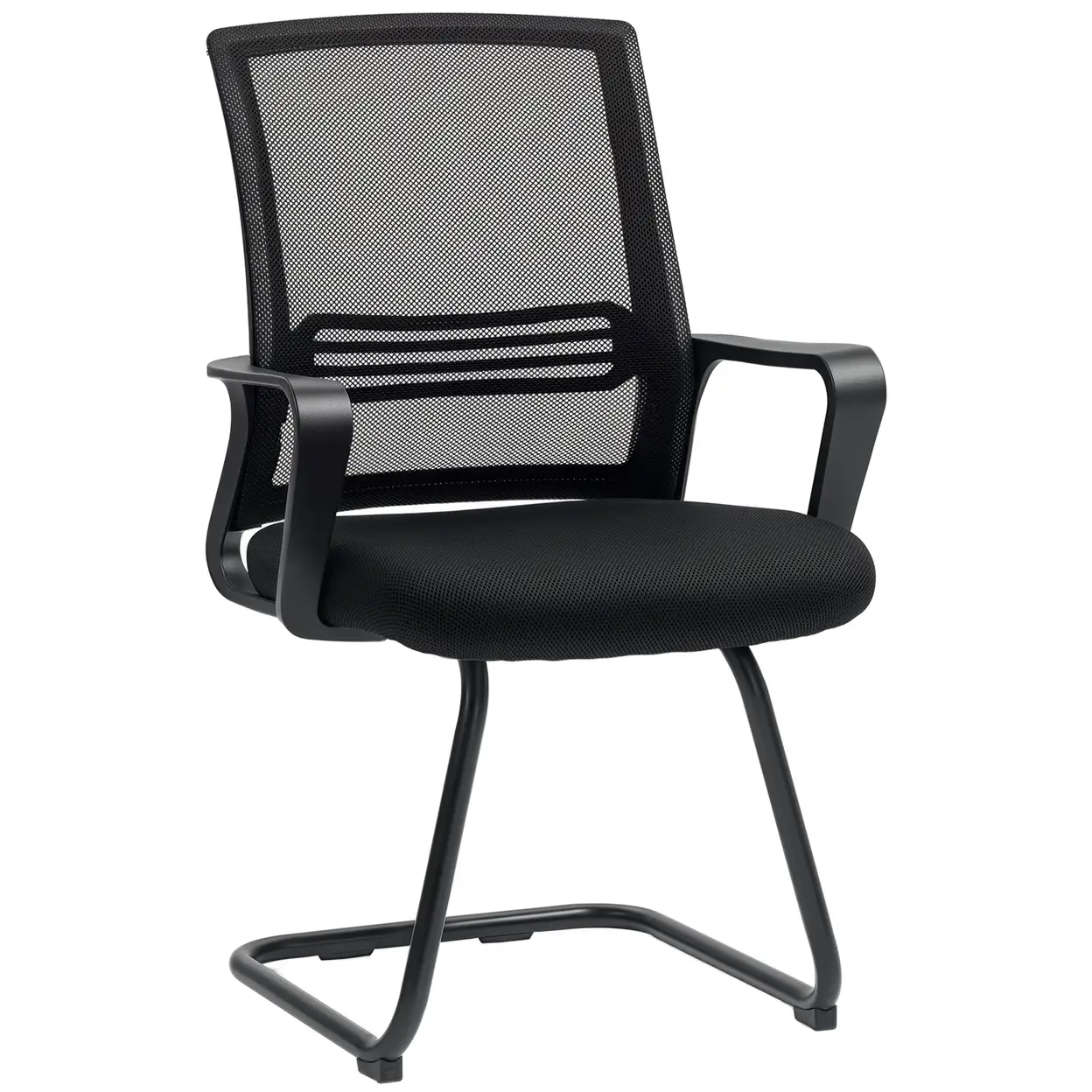 HOMCOM Ergonomic Desk Chair No Wheels, Padded Meeting Office Chair with Sled Base for Home Conference Room, Bedroom, Waiting, Reception, Black