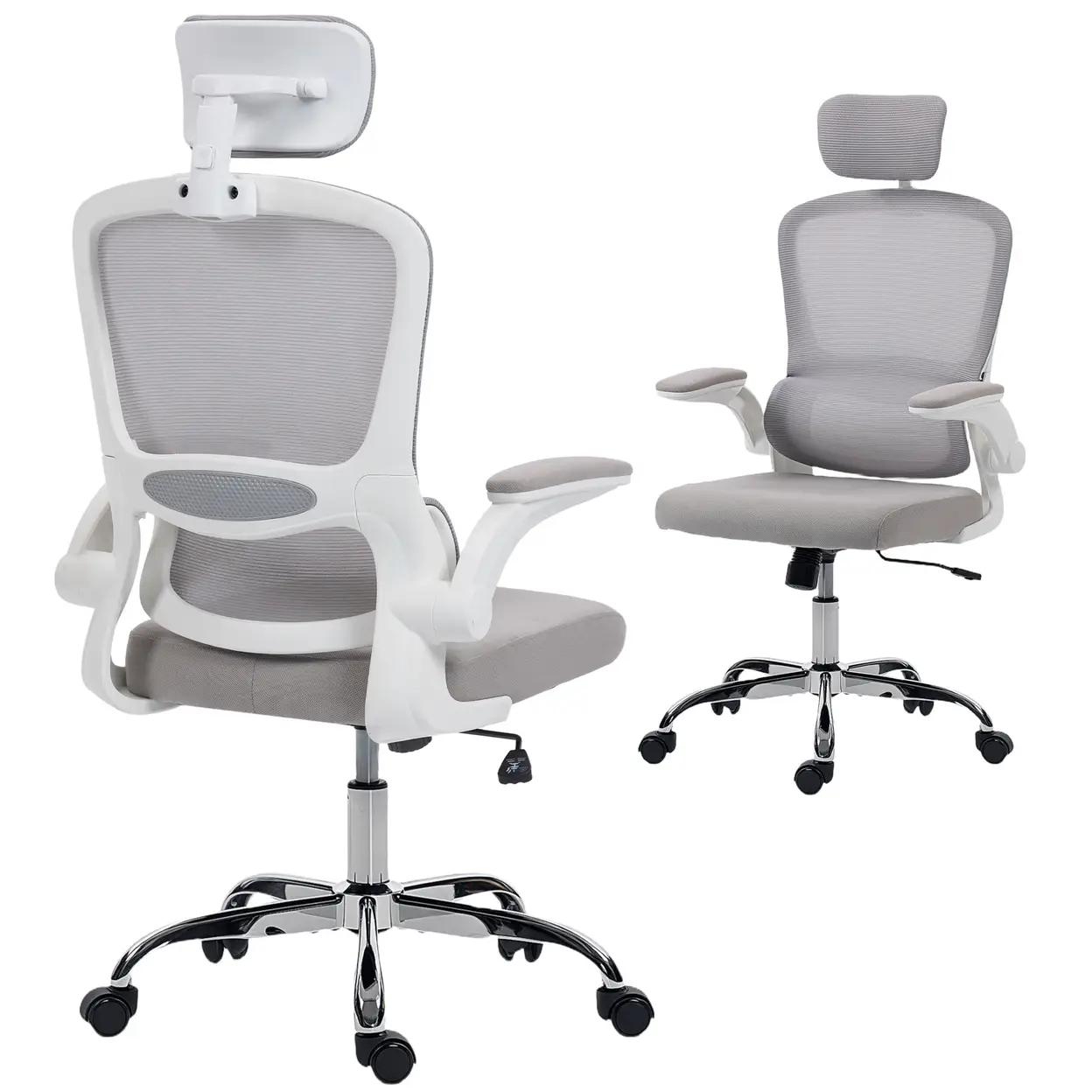 HOMCOM Ergonomic Office Chair, High Back Mesh Computer Desk Chair with Adjustable Headrest and Lumbar Support, Flip-up Armrests for Home Office, Grey