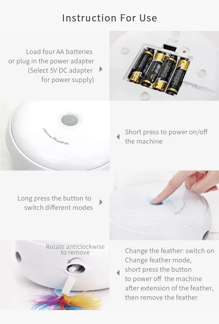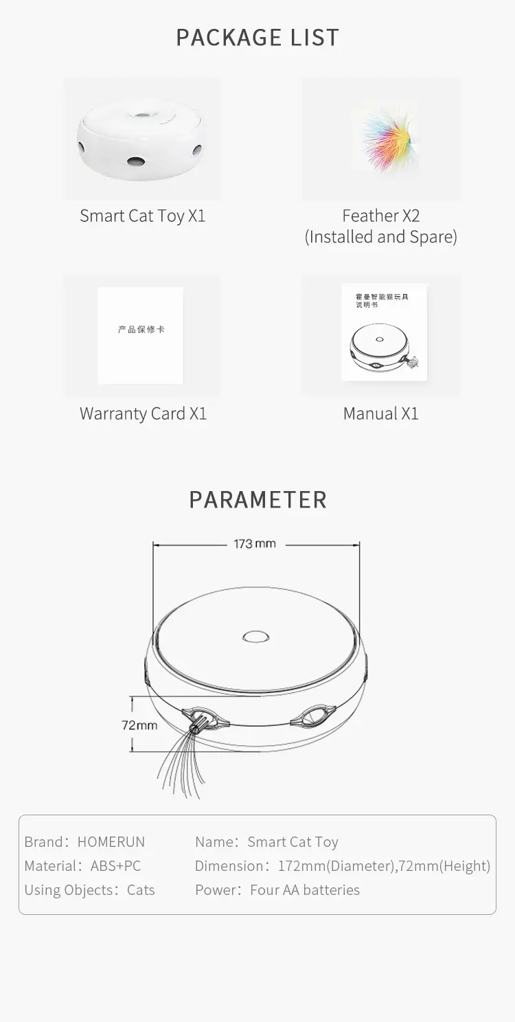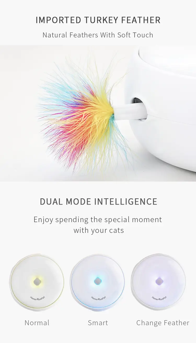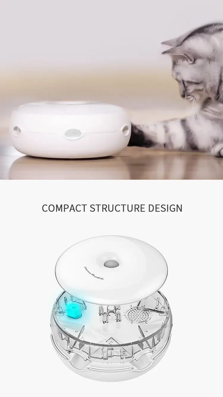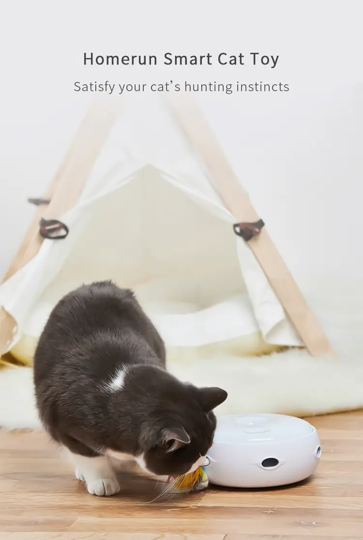 homerunPET Interactive Electric Cat Toy with Feathers, Crazy Play, Automatic Spinning Disc, Tom & Jerry Doughnut-Shaped Design for Indoor Cat