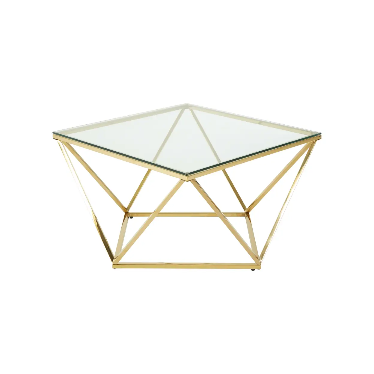 The frame, made from high-quality stainless steel, boasts a stunning gold finish. The tempered glass top not only enhances the table's sleek appearance but also provides a sturdy and durable surface. With a product capacity of 40kg, this side table is as functional as it is stylish, capable of holding your essentials and decorative items with ease.