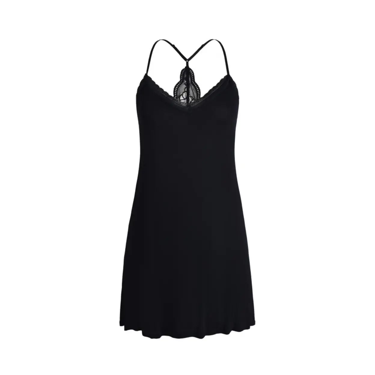This V-neck camisole nightdress combines a smooth, skin-friendly knitted fabric with contrasting black lace trim to create an elegant and sexy home style. It offers a comfortable, breathable fit with thoughtful design details for year-round wear, easily elevating the sophistication of loungewear.