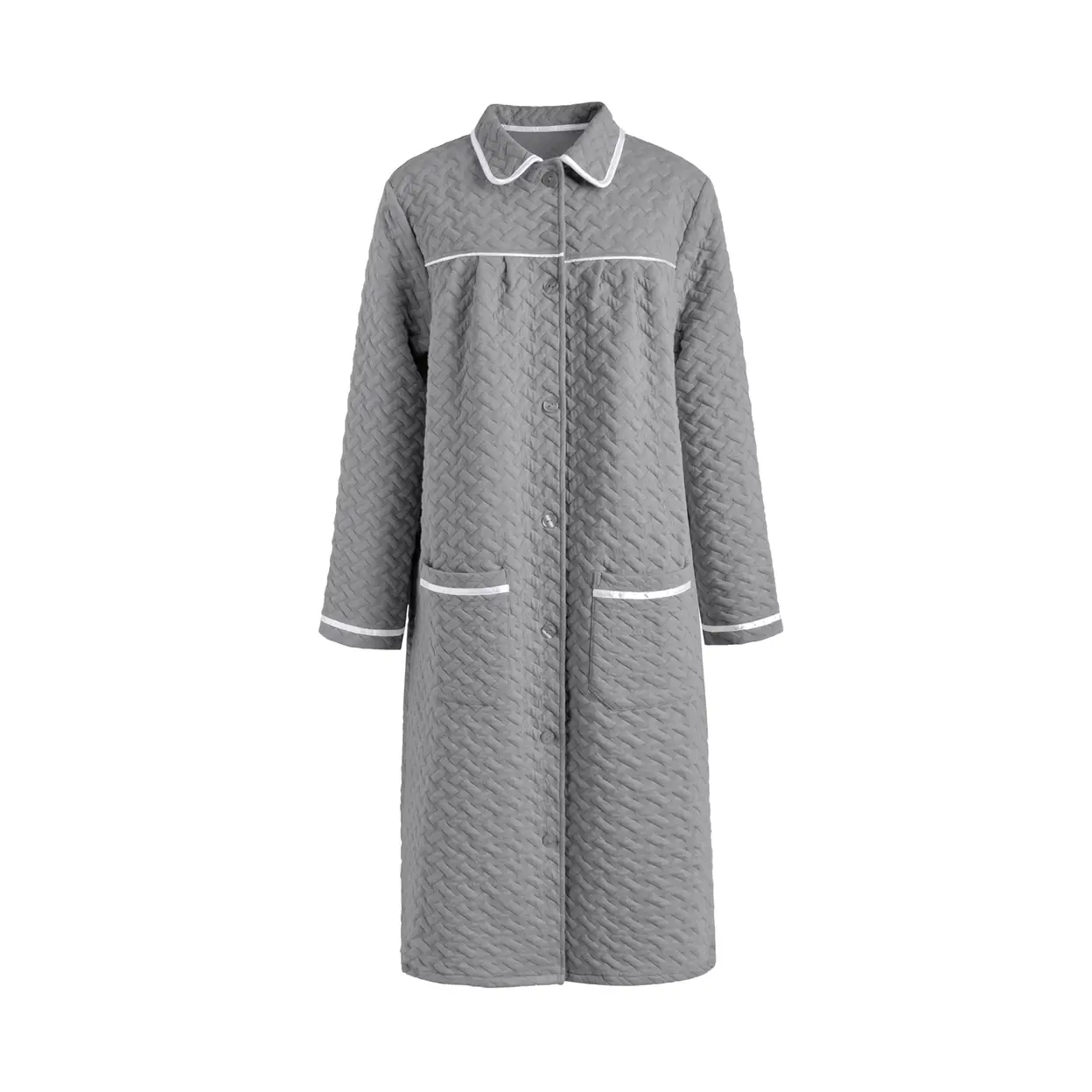 This Quilted Diamond-pattern Lapel Long Robe features cotton-padded quilted warm fabric and a minimalist shirt-style lapel design, creating a warm and comfortable home style. It offers lightweight insulation and practical elegance, perfect for cozy lounging during autumn and winter.