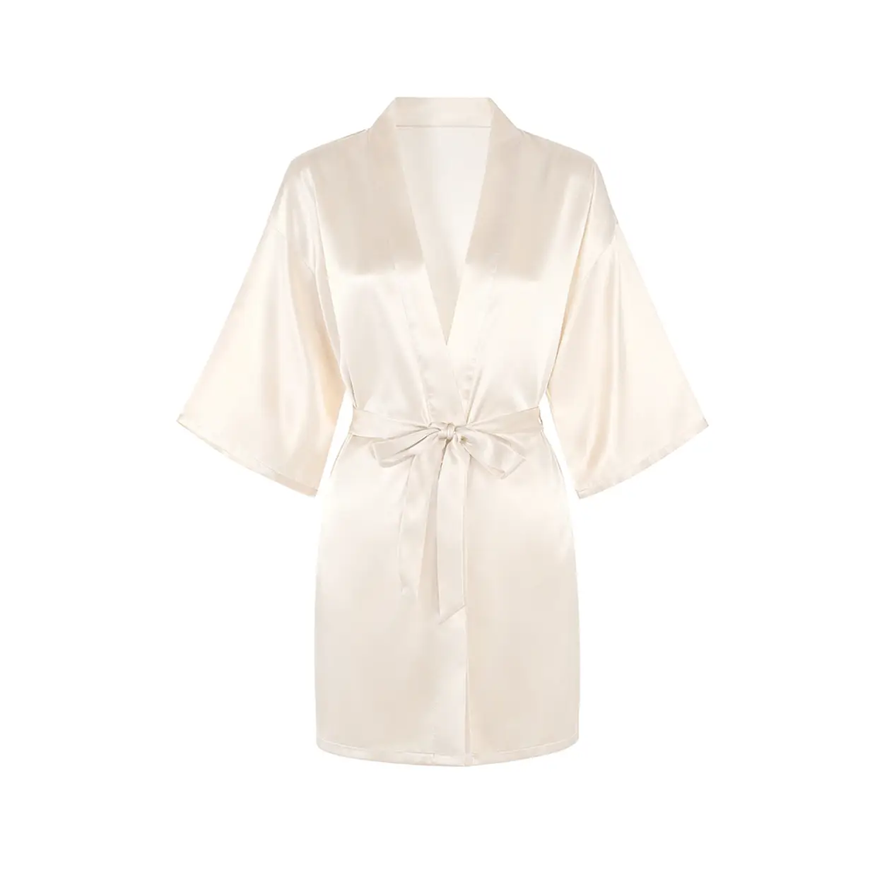 IZURIA mid-sleeved champagne silk-like bathrobe M