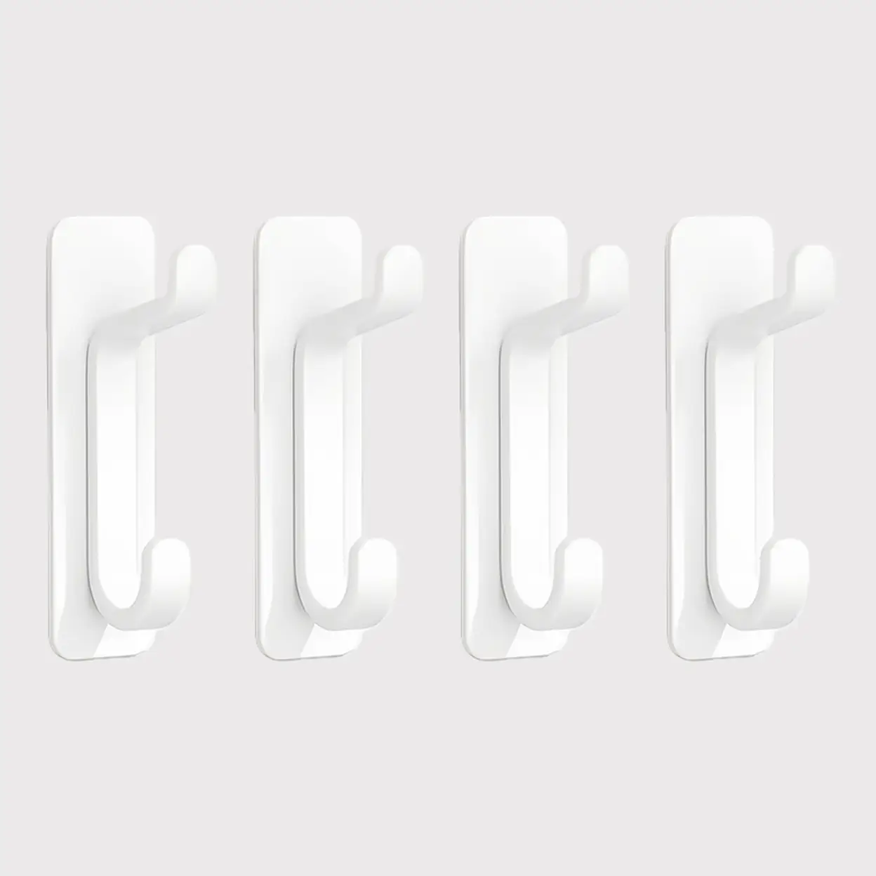 JORDAN&JUDY No-Drill Strong Adhesive Hooks, 4-Pack, Stainless Steel, Damage-Free, Over-Door Storage, White