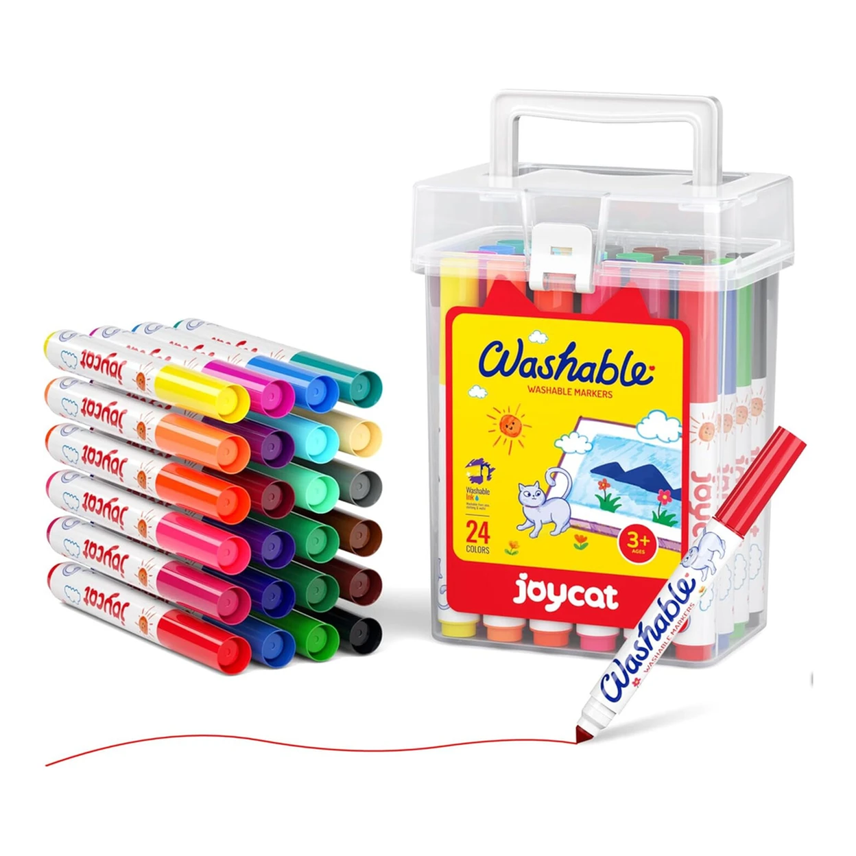 JoyCat 24 Count Washable Markers Set, 24 Colors, Includes Carrying And Storage Case, Ideal For Kids