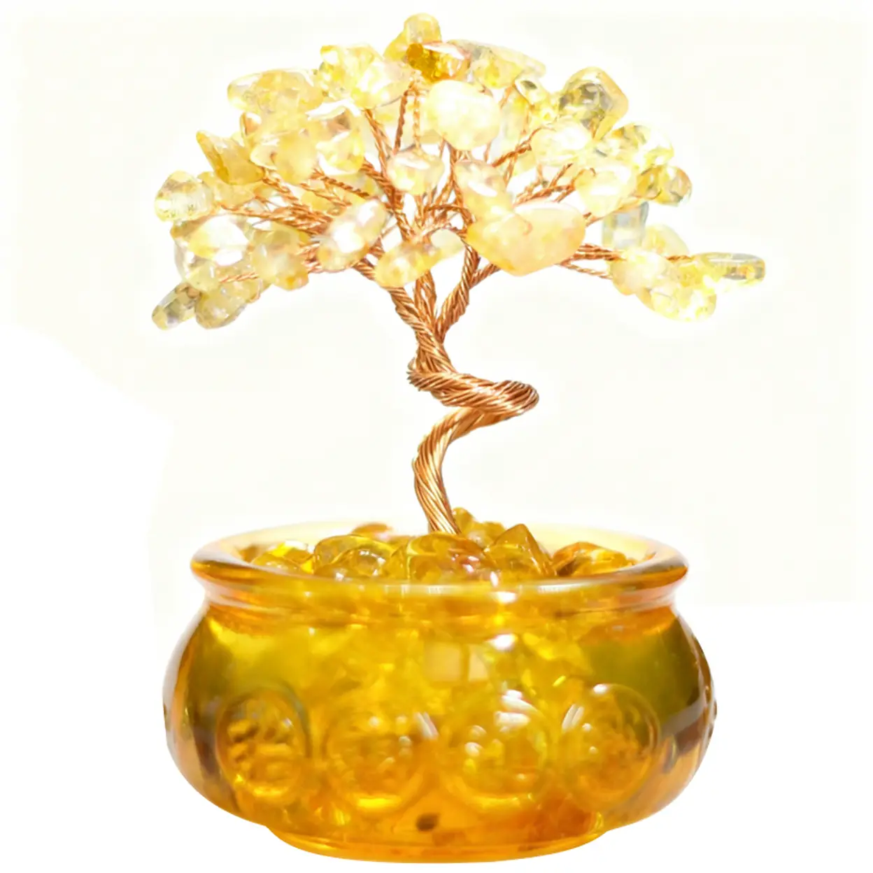 JU7CER 1PC Citrine Tree with Treasure Bowl Teacup - Natural Crystal Chip Money Tree Decoration, Suitable for Office, Home & Wedding Decor, Christmas Must-Have