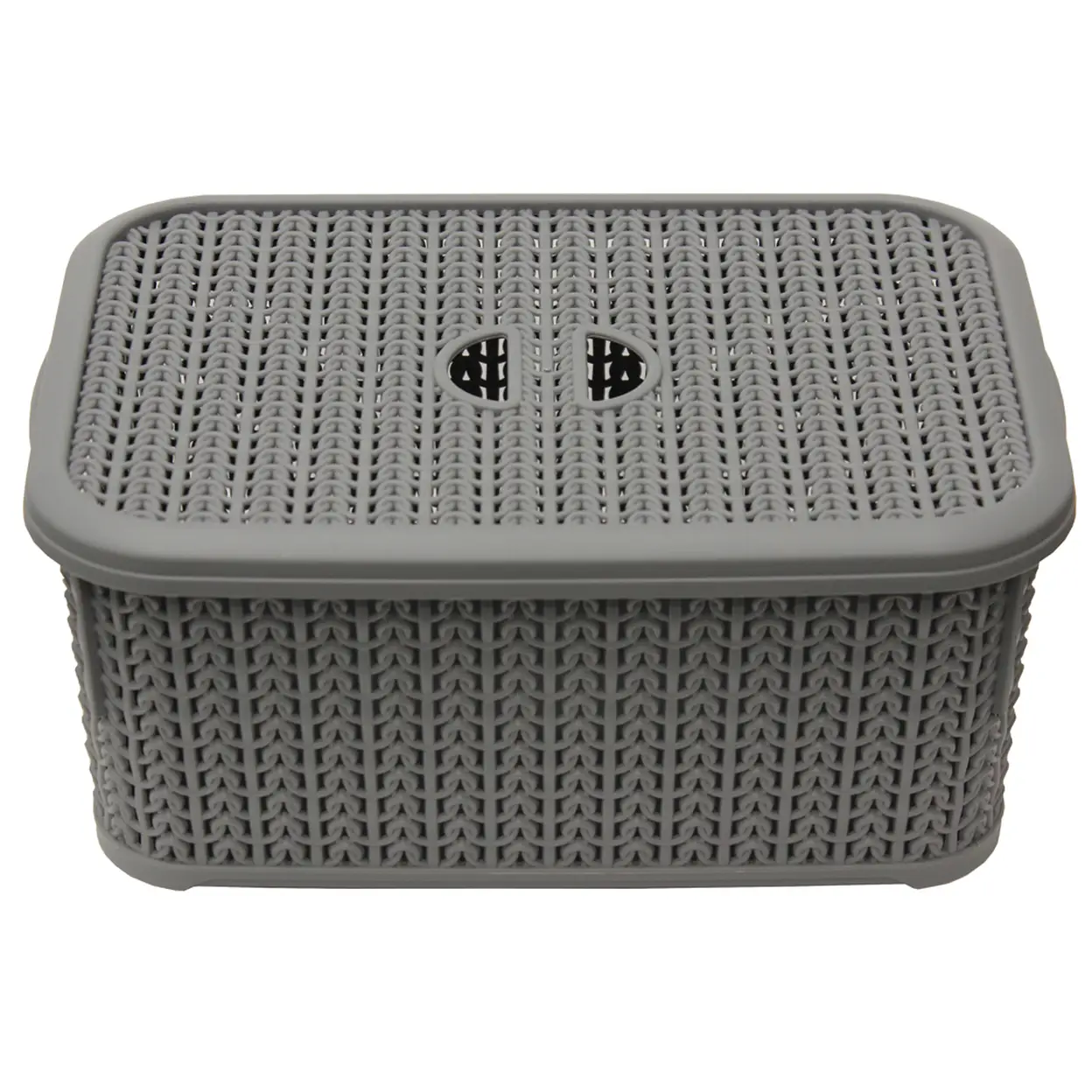 JVL Knit Design Loop Plastic Lidded Rectangular Storage Basket with Handles – Grey