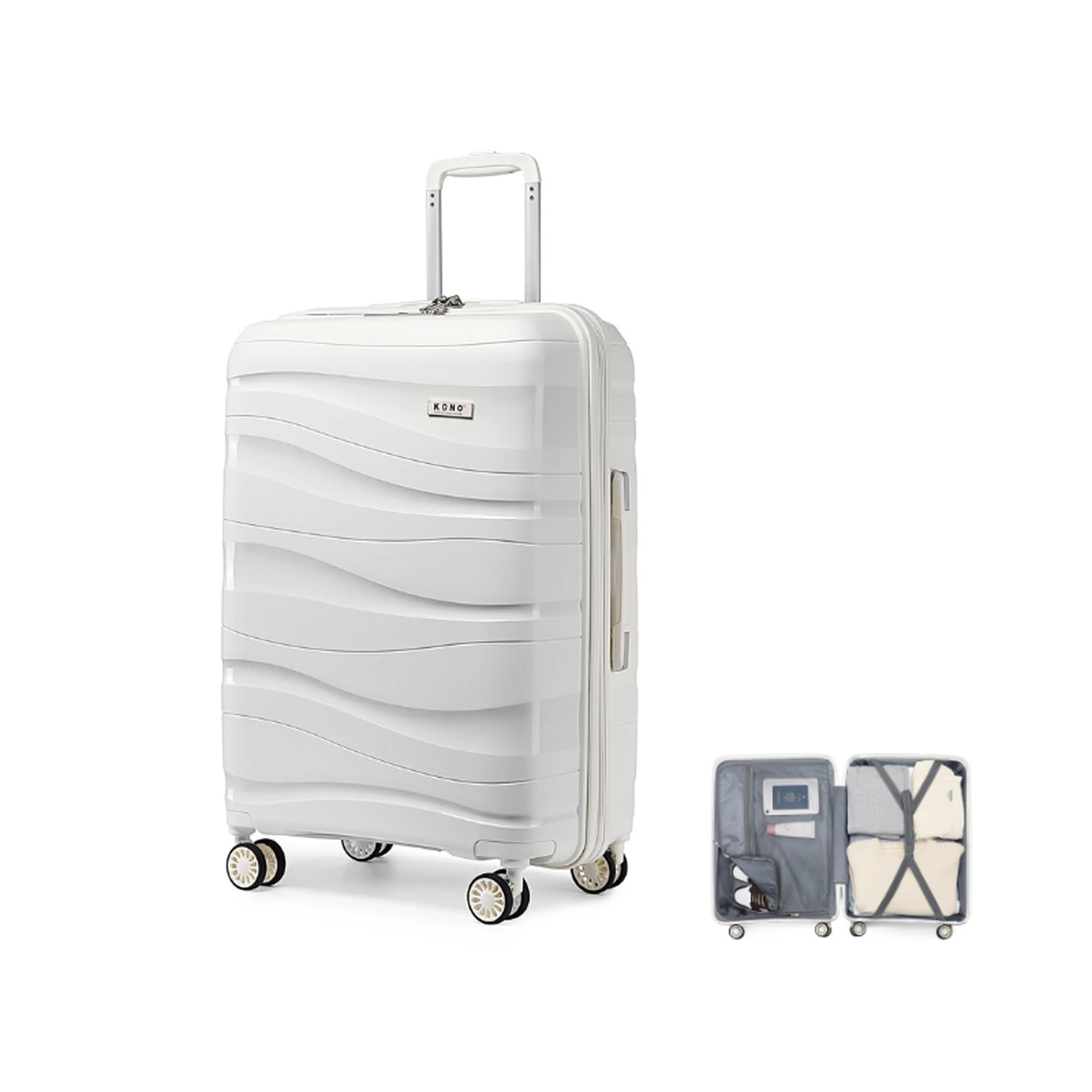 Kono Large Check in Luggage 28 inch Lightweight Polypropylene Hard Shell Suitcase with TSA Lock Spinner Wheels(White)