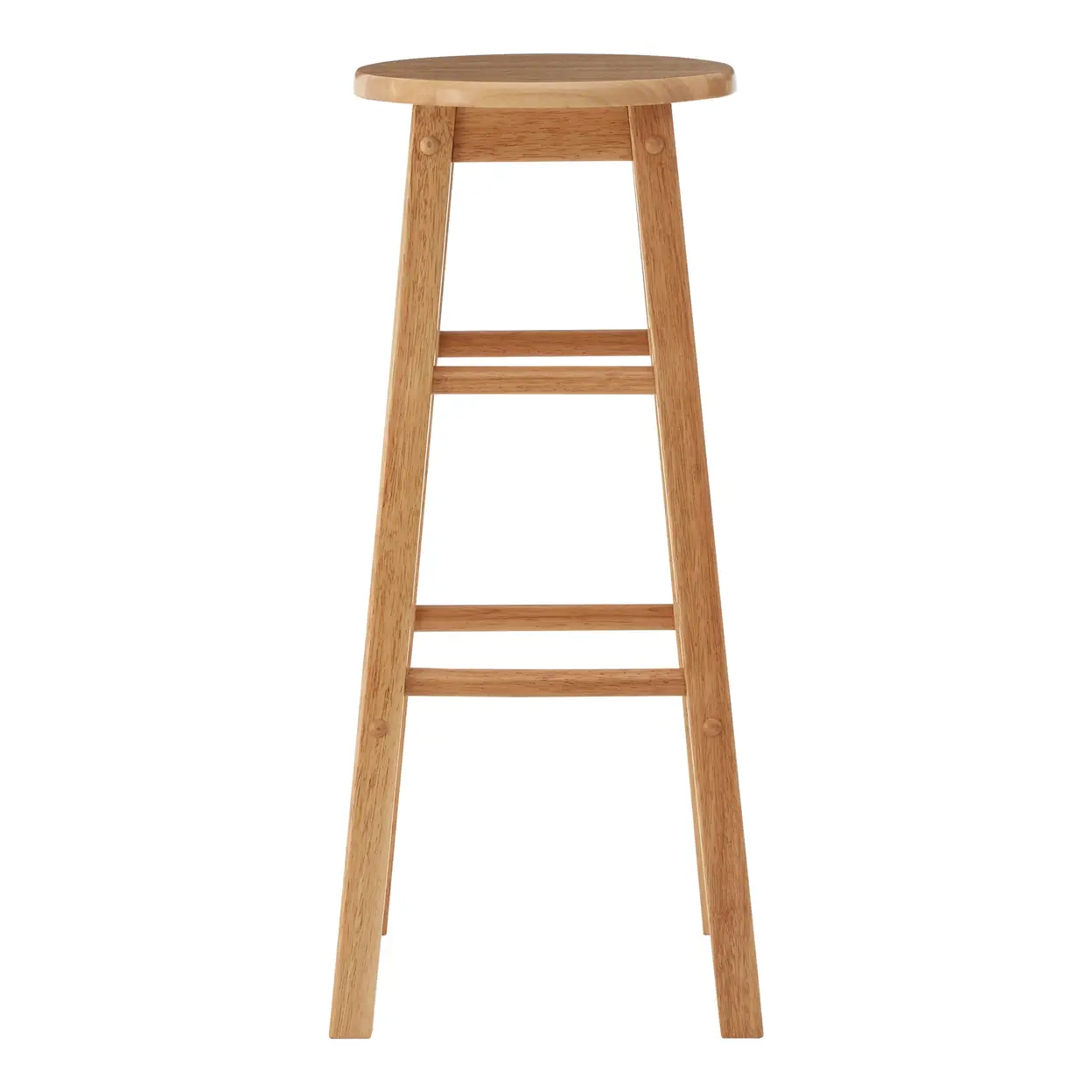Infuse your kitchen or breakfast bar with a touch of sustainable charm with the Selby Bar Stool. Crafted from sustainable Hevea rubberwood, this tall stool offers a beautiful blend of functionality and style. The A-frame legs provide exceptional stability and a classic profile. The bar stool boasts a comfortable round seat with a built-in footrest, ensuring a relaxed seating experience. The warm shade of the natural wood creates an inviting atmosphere that blends effortlessly with various decors.