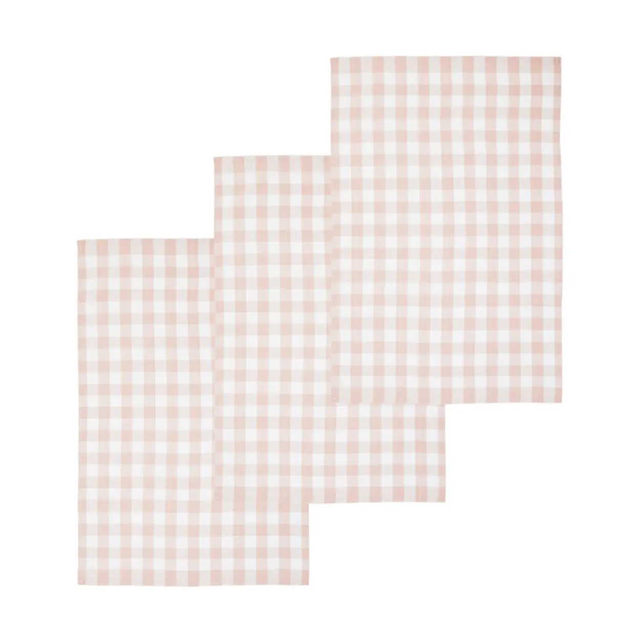 This set of three towels, crafted from pure cotton fabric, offers a sustainable and stylish solution for your kitchen needs. Featuring a classic amber and white gingham check pattern, these towels are not only visually appealing but also highly functional. Machine-washable for easy care, they are soft and durable, making them ideal for drying dishes, hands, and cleaning up kitchen spills. The fine hemming ensures a polished look and enhances their longevity. These versatile towels can also be used for lining bread baskets, adding a touch of charm to your kitchen decor. Designed to avoid bacteria buildup, they promote a hygienic environment, making them an essential addition to any kitchen.