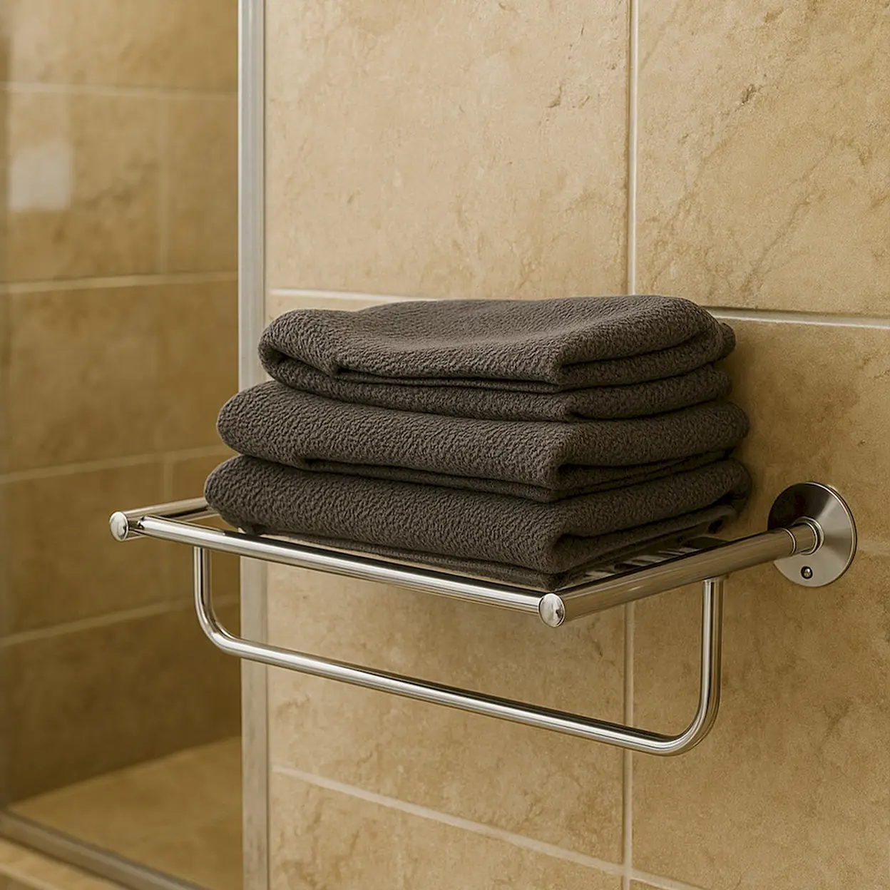 Upgrade your bathroom with this versatile storage unit, designed to combine organization and convenience in one sleek package. The frame is crafted from heavy-gauge steel tubing and finished with rust-resistant chrome plating, ensuring both durability and a modern look that complements any décor. The upper wire shelf offers generous space for neatly folded dry towels, toiletries, and other essentials, while the lower hanging rail provides an ideal spot for air-drying wet towels. Easy to install on your wall, this space-saving organizer keeps your bathroom tidy and functional, with a robust build that stands up to humid conditions.