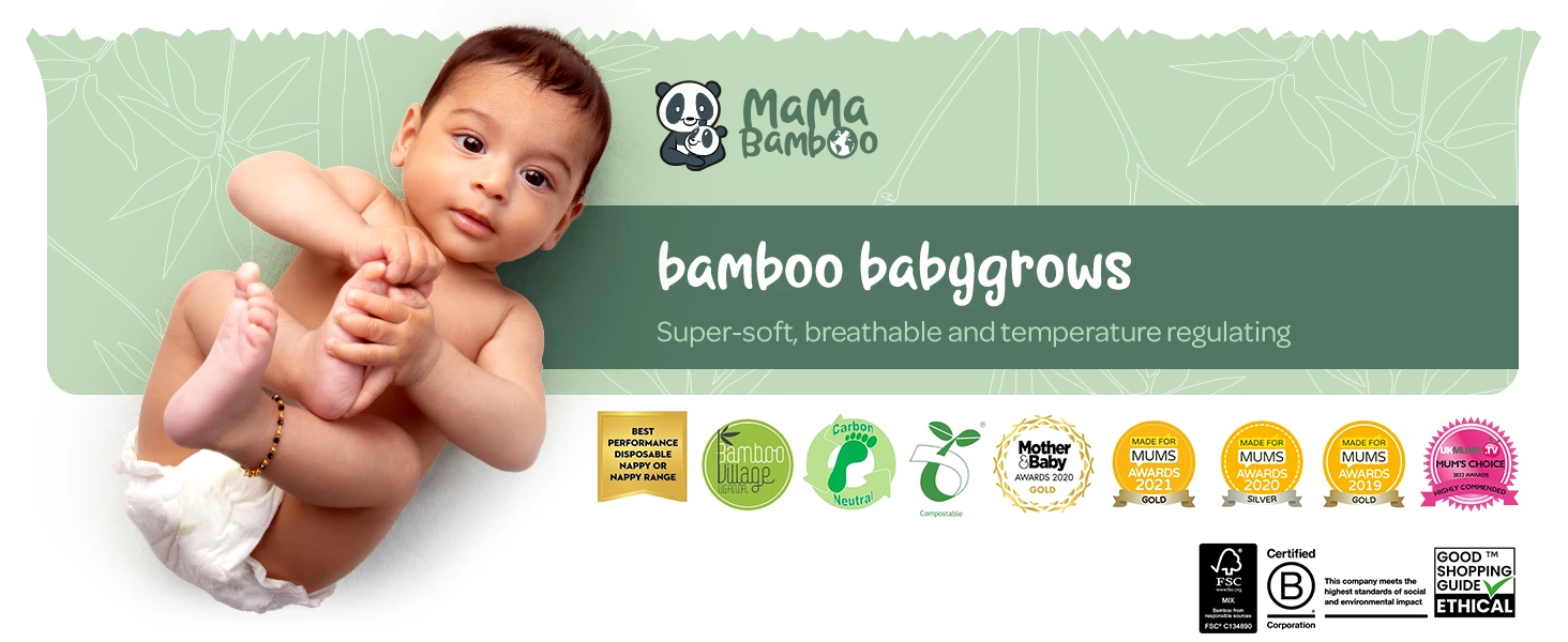Mama Bamboo Babygrow 3-6 Months White Bamboo Print