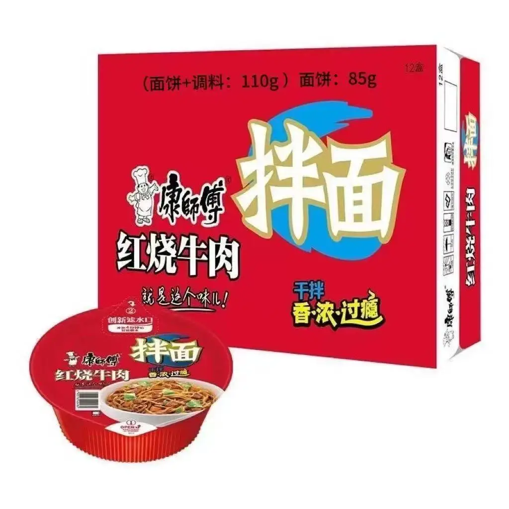 Master Kong Braised Beef Jerky Noodle Bowl, 130g x 12