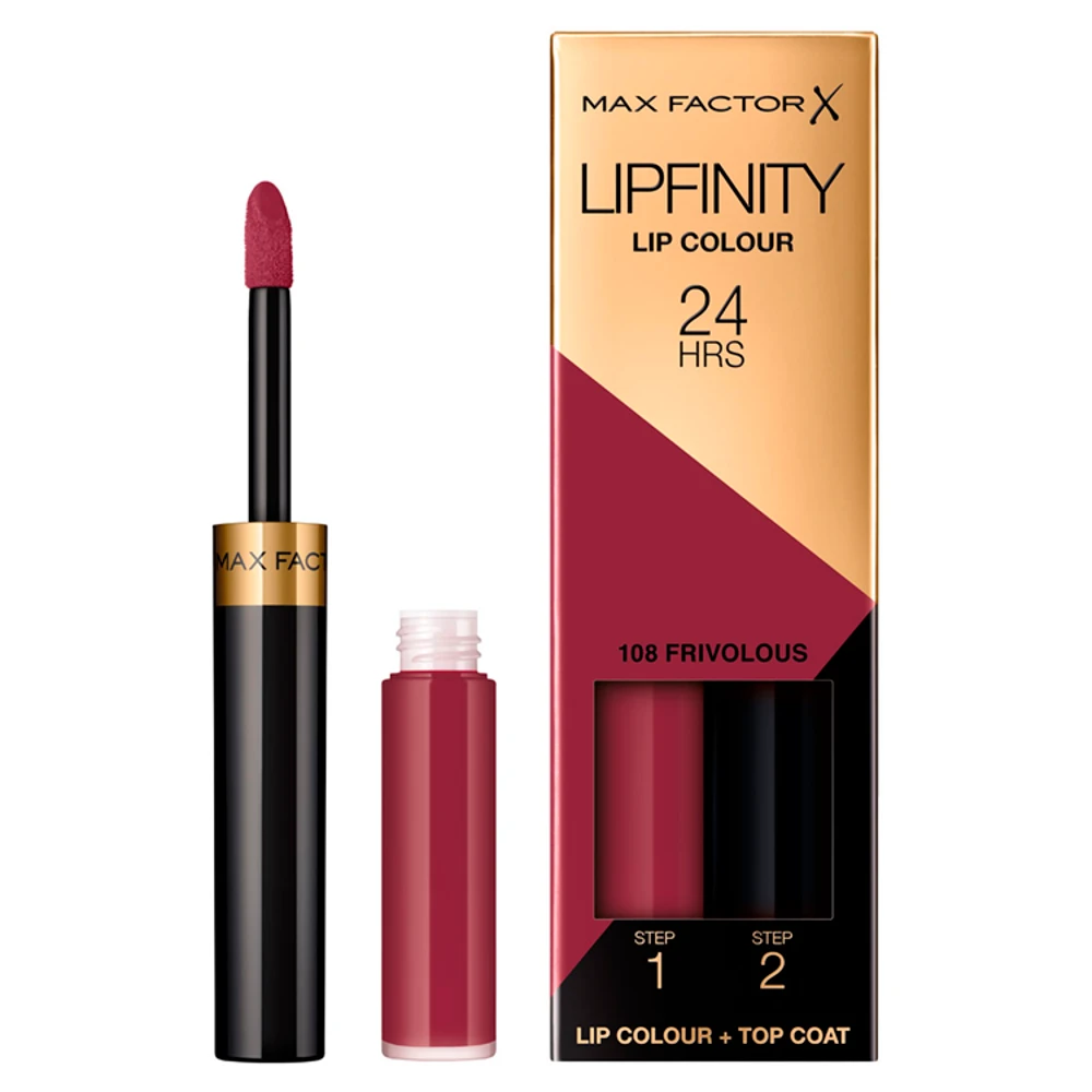 Max Factor Lipfinity Lip Colour Lipstick, 2-Step Long Lasting, 108 Frivolous, 2.3ml + 1.9g