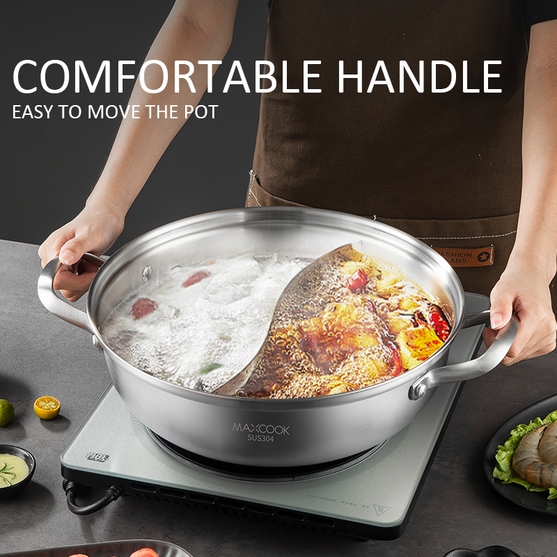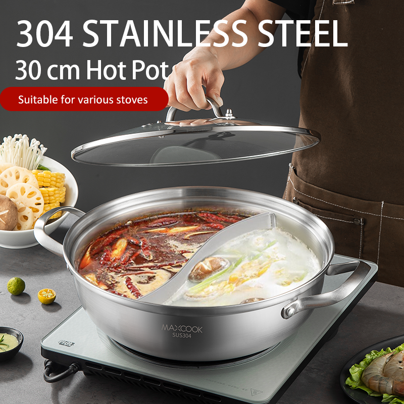 Maxcook 3-Layer 304 Stainless Steel Double-Flavor Hot Pot - With Glass Lid - 30cm