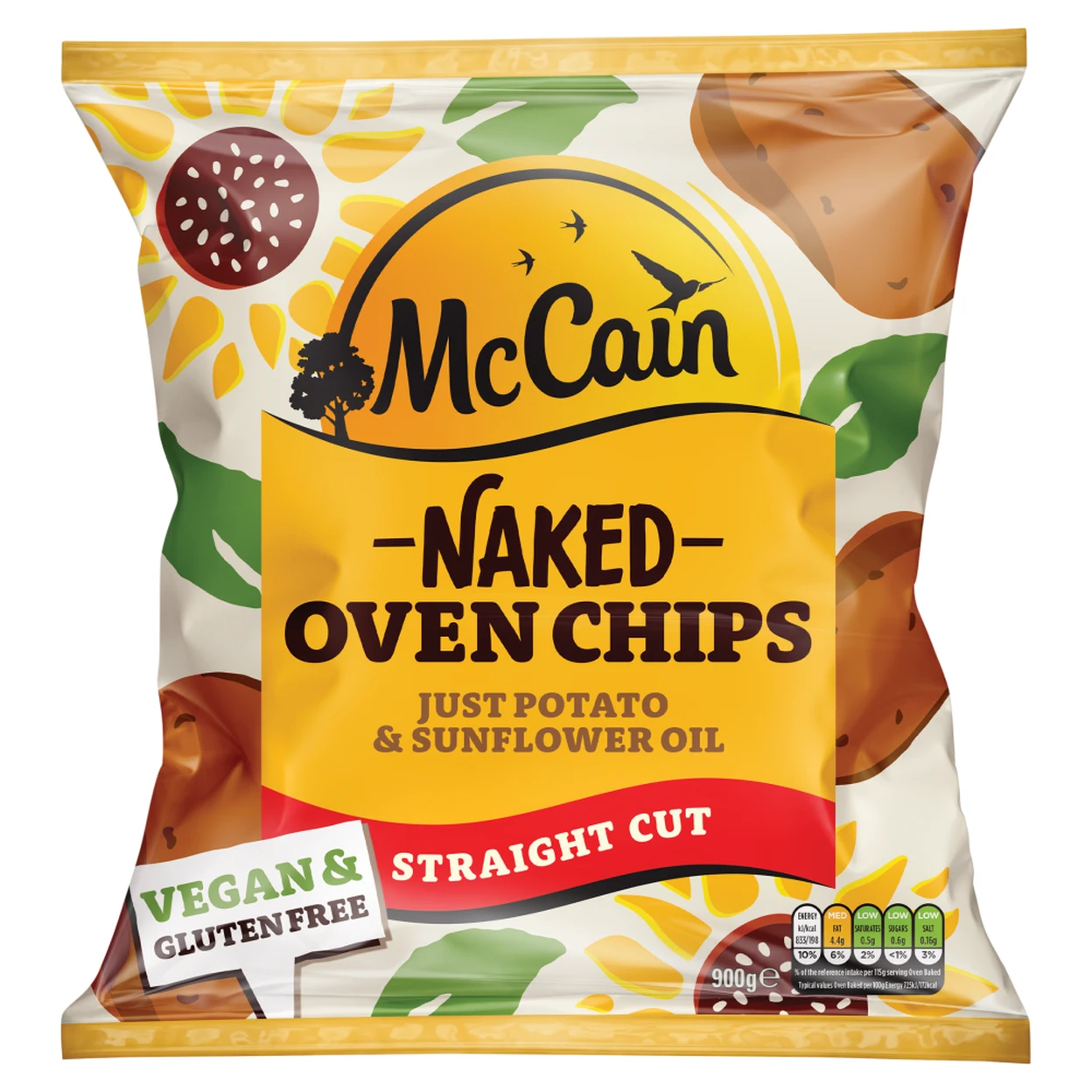 Enjoy the pure taste of McCain Naked Oven Chips Straight, made with just potatoes and sunflower oil. These oven-ready chips are prepared in sunflower oil for a light, crispy texture and golden finish. Vegan, gluten-free, and HFA approved, they are perfect for quick and easy meals. McCain is committed to supporting UK families and sustainable farming practices, making these chips a responsible choice for every home.