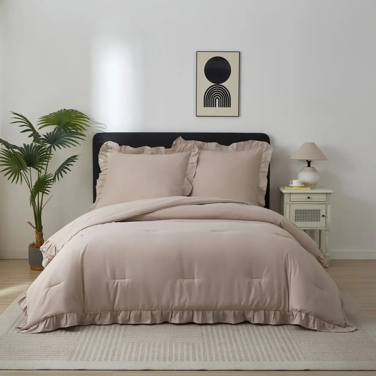 Meeallhome Comforter Set Vintage Ruffle Bed Set 200*200cm/50*75cm*2 khaki