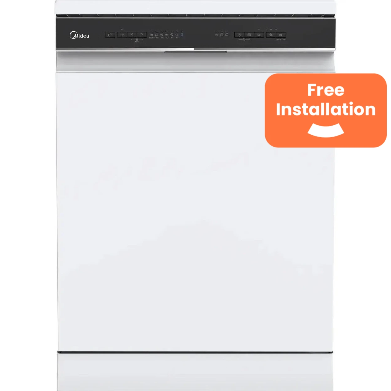 Midea MDWEF1433D(W)-WG-UK 60cm Wide Full Size Freestanding Dishwasher With Cutlery Tray, White, C Rated