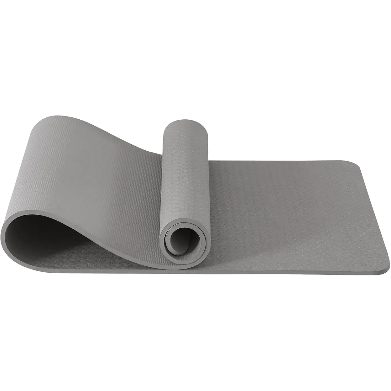 Miss Lulu Good Nite Yoga Mat Exercise Mats Workout Pilates Fitness Mat for Women Men Non-Slip Thick 10mm High Density Gymnastics Mats with Carry Strap Tpe 183 x 61 x 1cm (Green/Black) Grey