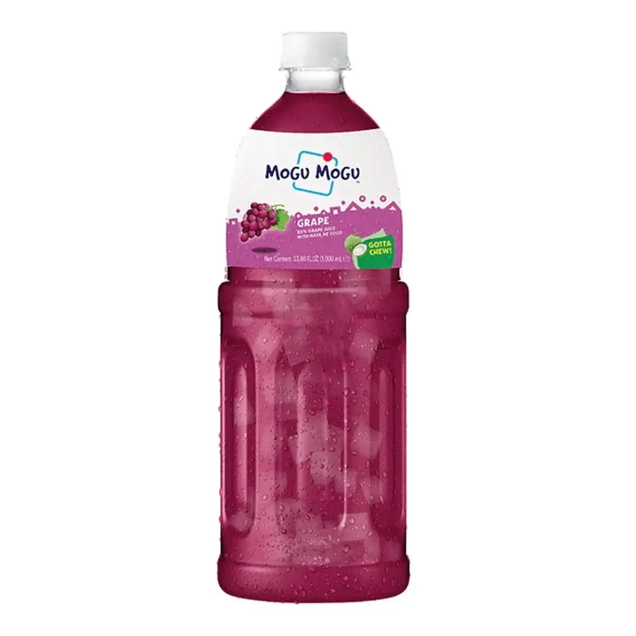 Mogu Mogu Grape is sweet and fruity with a berry nuance. This drink contains chewy pieces of nata de coco, also known as coconut jelly.