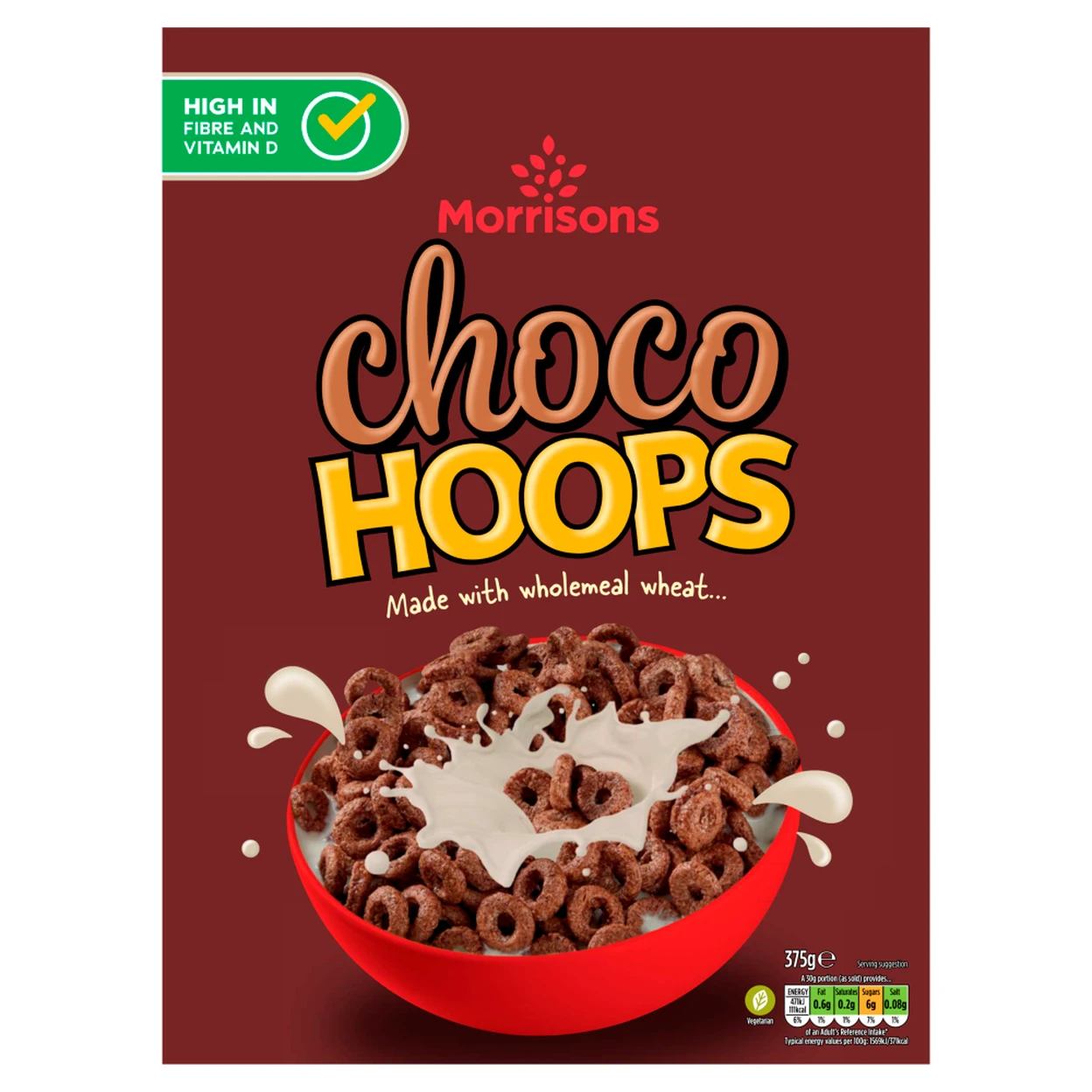 Wholemeal Wheat Flour, Wheat Flour (Wheat Flour, Calcium Carbonate, Iron, Niacin, Thiamin), Sugar, Maltodextrin, Fat Reduced Cocoa Powder (5%), Salt, Flavouring, Niacin, Iron, Riboflavin (B2), Thiamin (B1), Vitamin D.