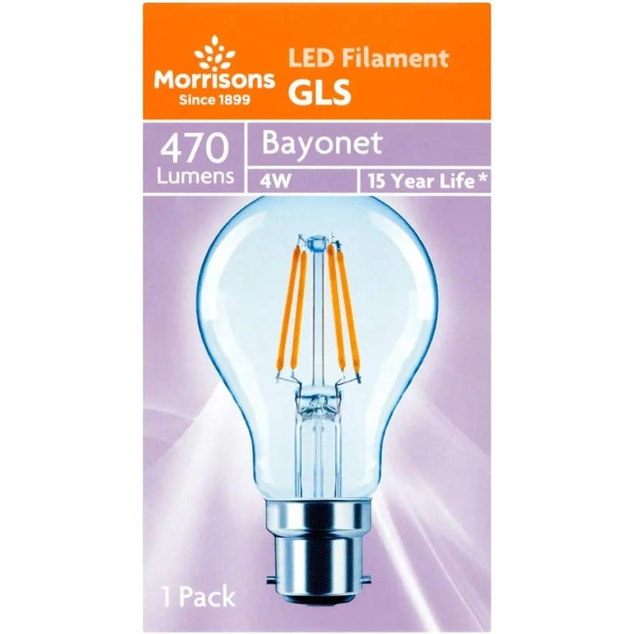 Morrisons Light Bulb LED Globe Filament Bayonet B22 Warm White 4W 470 Lumens 2pcs
