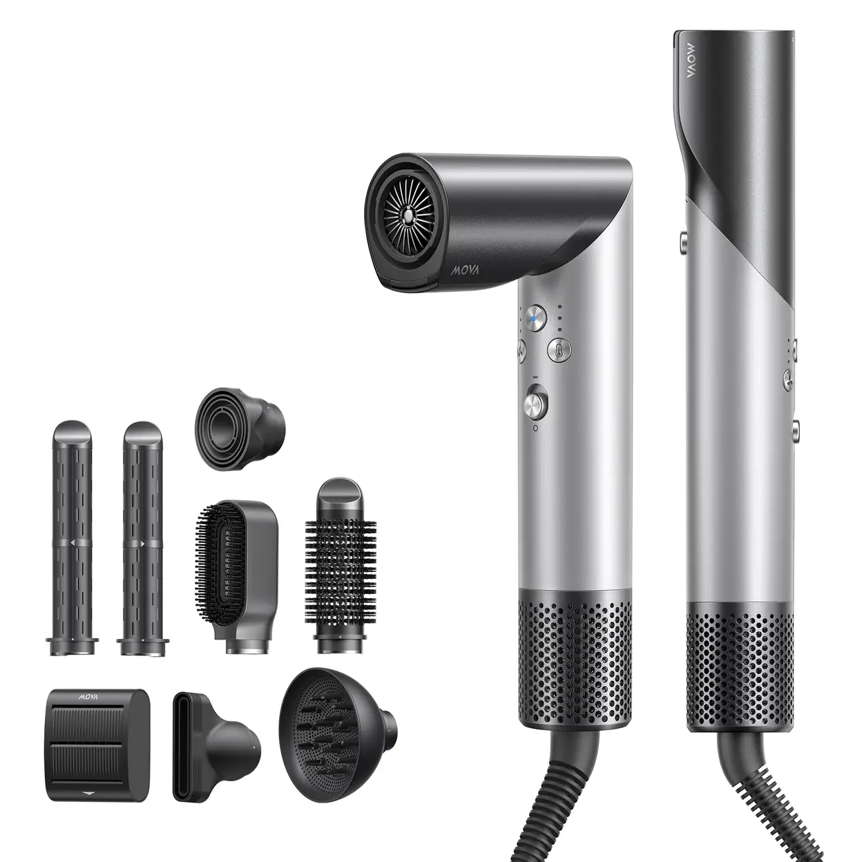 MOVA Master 10 Hair Styler with Attachments, 9-in-1 Hair Dryer & Styler, 110,000 RPM High-Speed Motor, Curl, Smooth & Volumise Hair, Fast Drying, Silver, AMMA10-Silver