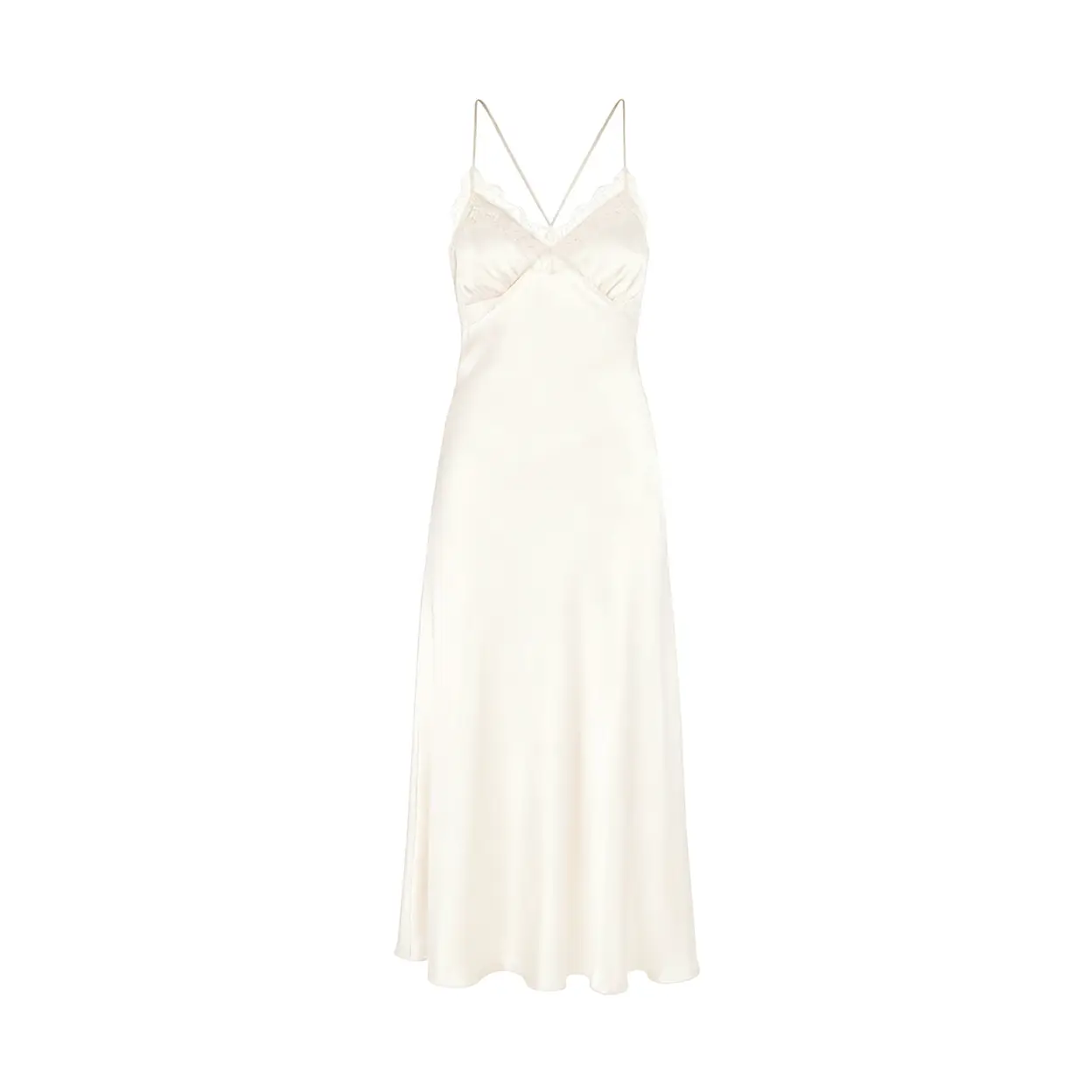 Design Details: Tone-on-tone lace splicing at the V-neckline introduces sophisticated textural contrast against the smooth satin base. Adjustable thin shoulder straps ensure a custom, slip-free fit. Minimalist solid-color construction accentuates the deep, luxurious hue.
