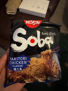 Enjoy the sweet and savory Japanese classic with Nissin Soba Yakitori Chicken. This 110g bag features stir-fried wheat noodles coated in a delicious yakitori glaze, offering a quick and flavorful taste of Japan's popular skewered chicken in noodle form.
