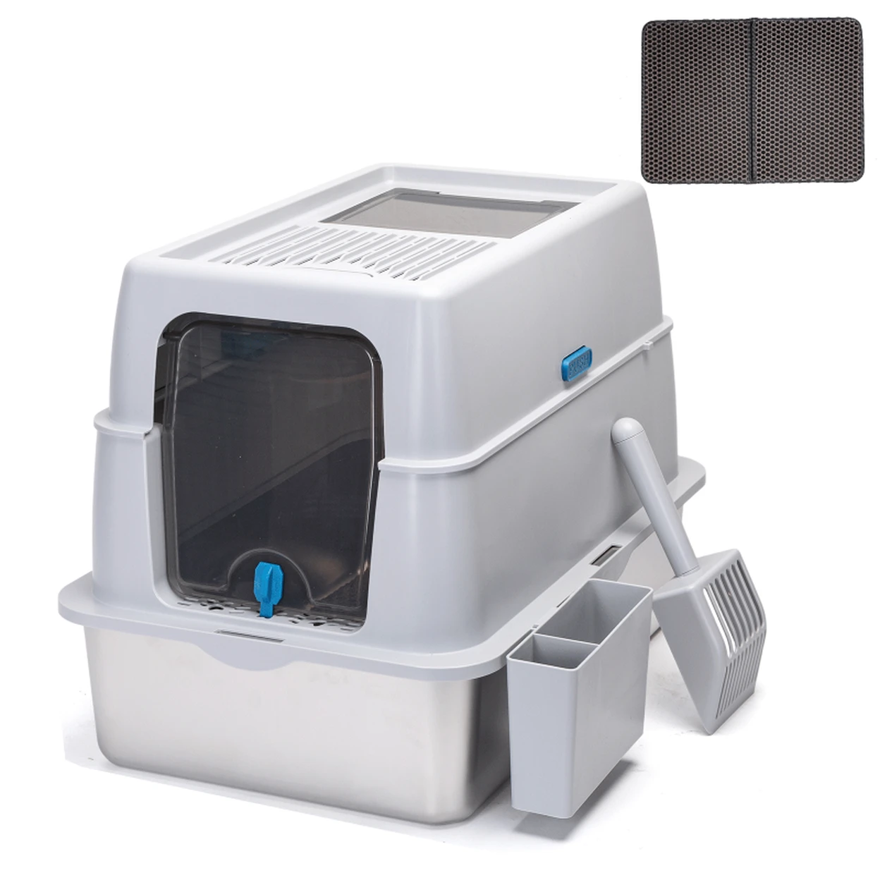 Nobleza Closed stainless steel cat litter box/With cat litter mat and cat litter scoop/L60*W40*H44cm/Grey/UKHigh-quality stainless steel, wear-resistant and scratch-resistant;Large size, more comfortable and spacious;Easy to clean, no odor;Complete accessories