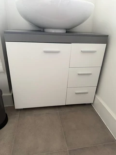 Ochama x SONGMICS Bathroom Storage Unit with Drawers, Under Sink Cabinet with Compartments and Feet, for Pedestal Basins, White and Grey