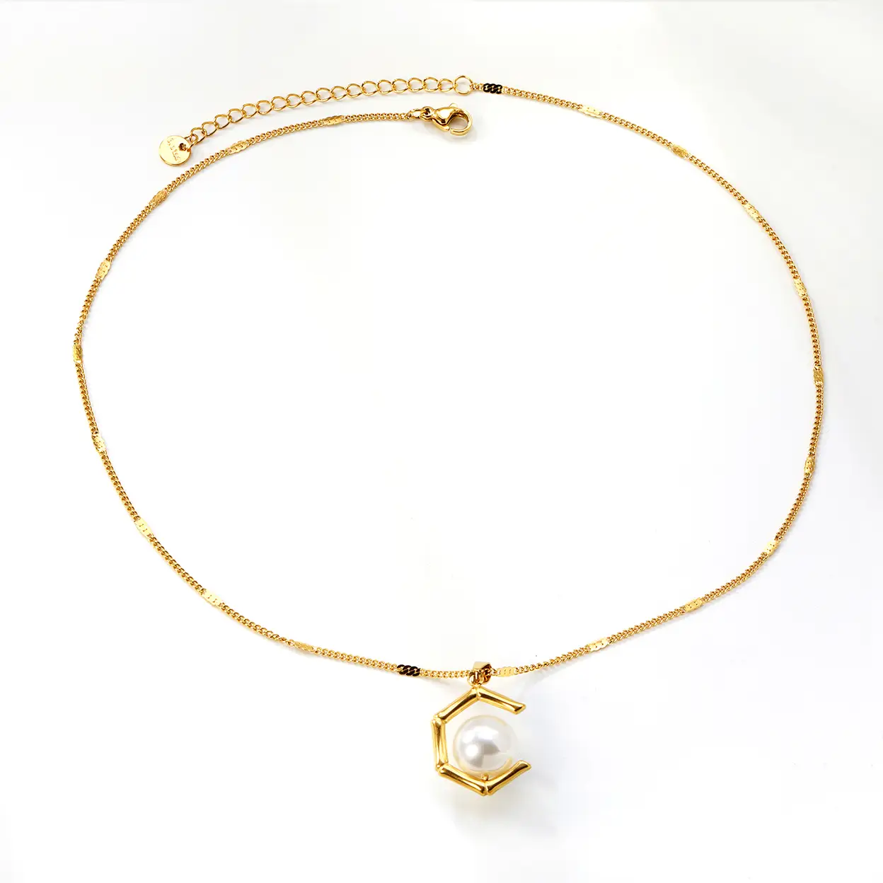Open Pentagon 18K Gold Plated White Pearl 40cm Necklace