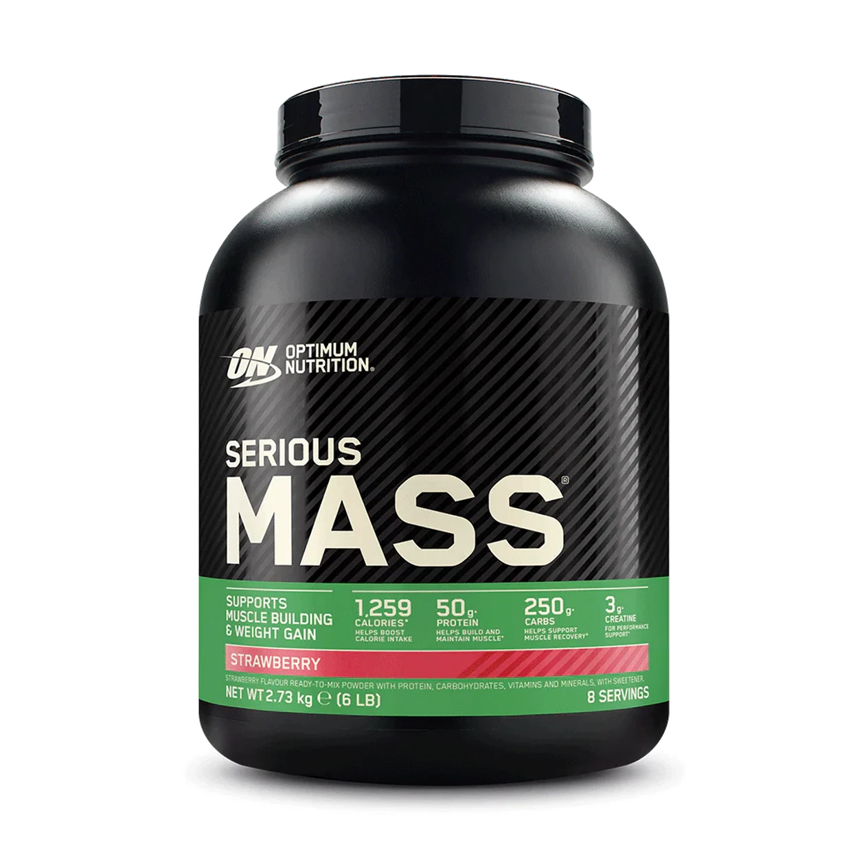 Optimum Nutrition Serious Mass High Calorie Weight Gainer Powder - Strawberry Flavour, 1250 Calories, 50g Protein, 250g Carbs, Creatine - 2.73kg (8 Servings)