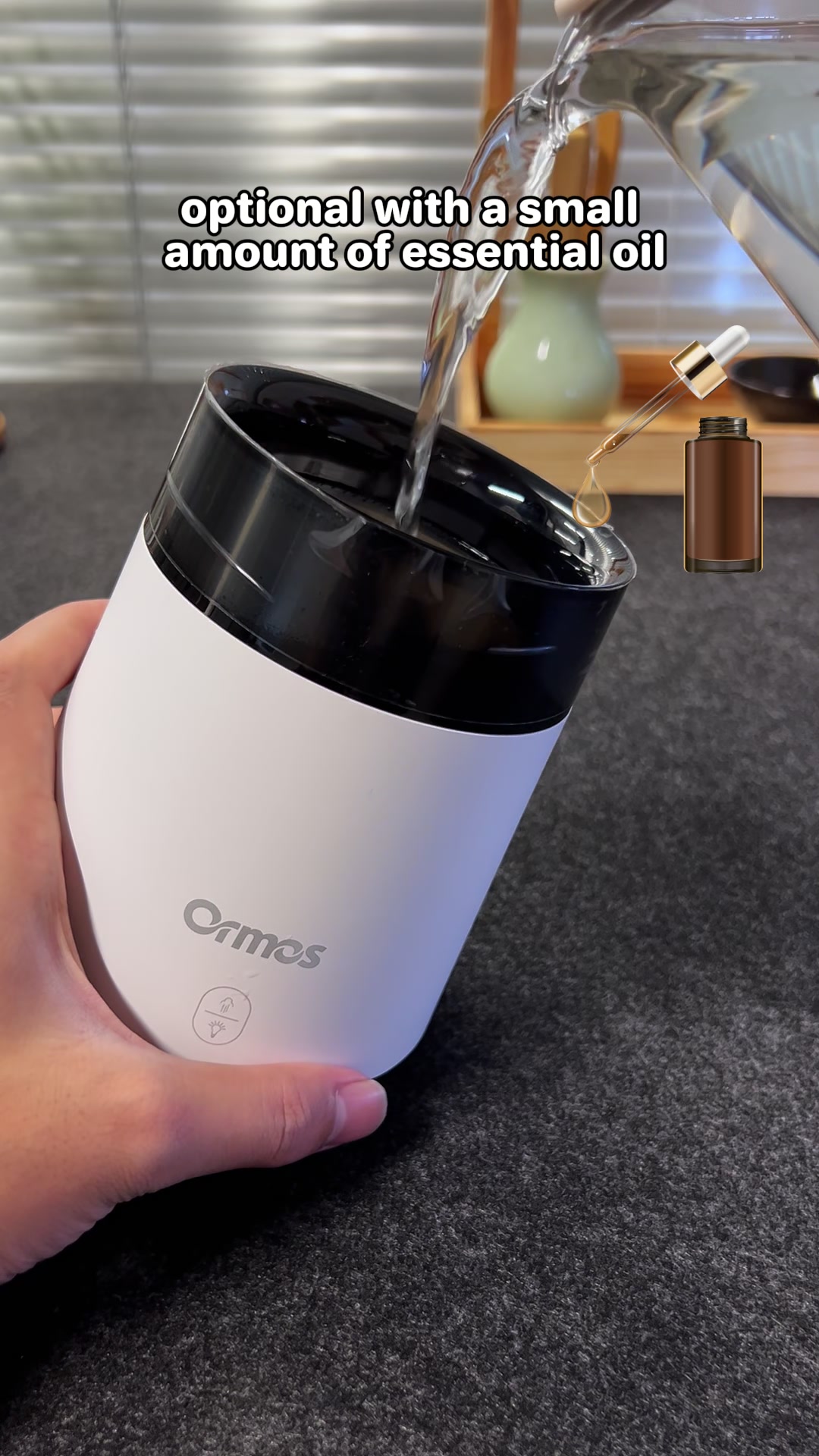 Ormos Aroma Humidifier H10 - 3 Settings, 7 Colors Ambient Lights, Type-C charging, Water shortage power-off protection, Ideal for small Rooms.