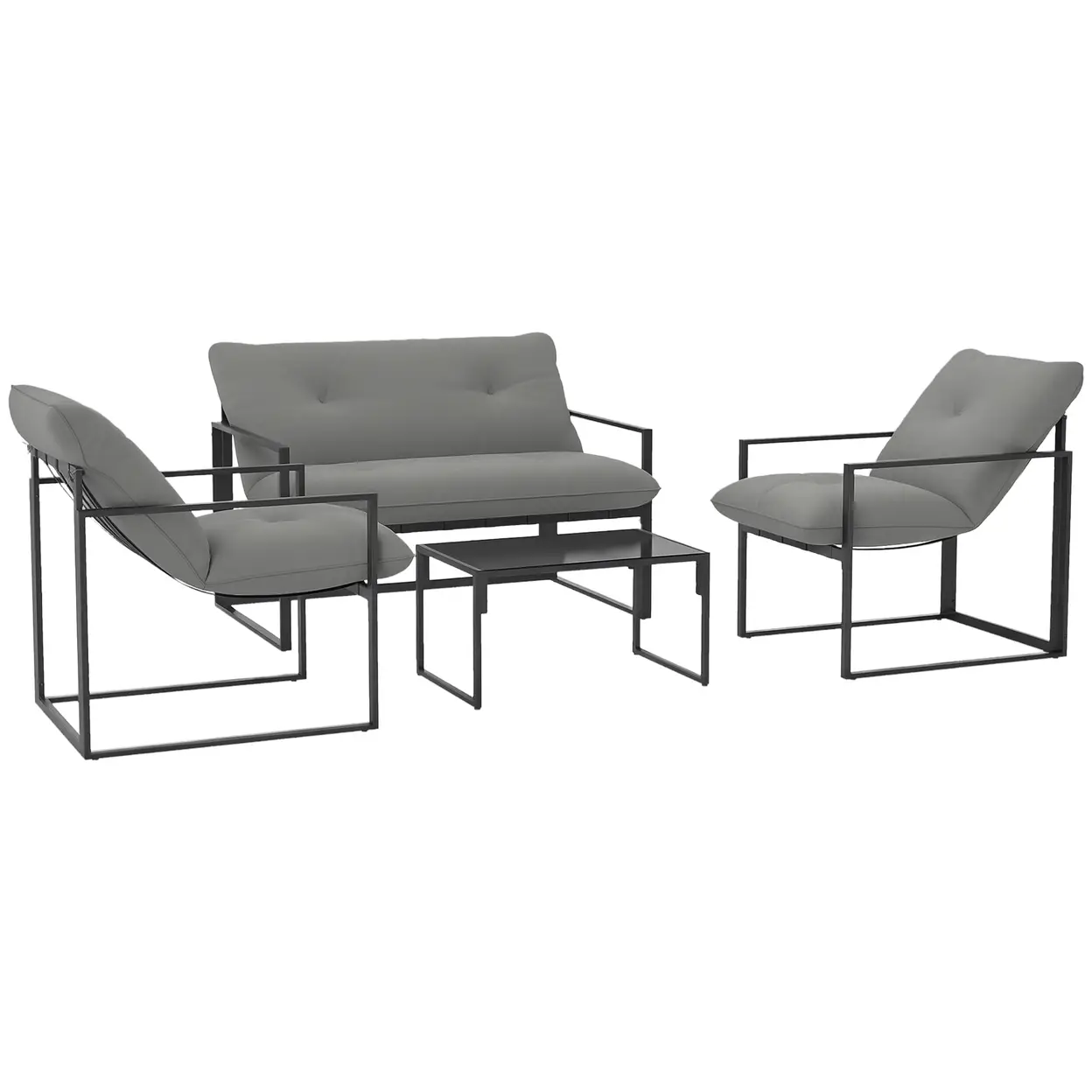 Outsunny 4 Piece Garden Sofa Set, 2 Single Armchair, Loveseat and Coffee Table Set with Steel Frame, Outdoor Furniture with Thick Cushions, Light Grey