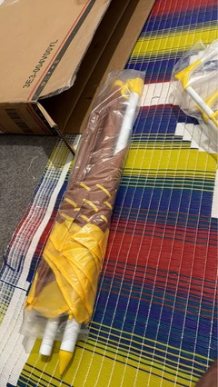● Dimensions: Table: 50H x Φ49.5cm. Chair: Fully expanded: 50H x 36.5W x 38.5Dcm. Folded: 6H x 49L x 39Wcm. Six-bone umbrella: 86-122H x Ф100cm. Seat: 26H x 29W x 23Dcm. Armrest: 38H x 20Lx 3.5Wcm. Backrest: 28.5H x 29Wcm;