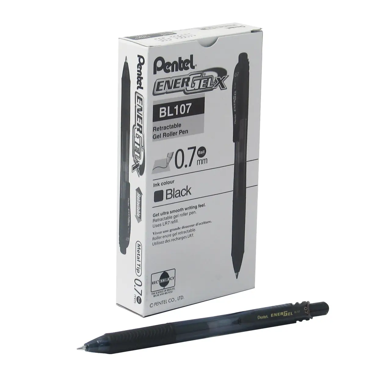Pentel EnerGel X 0.7 Retractable Gel Pen Black Pack of 12