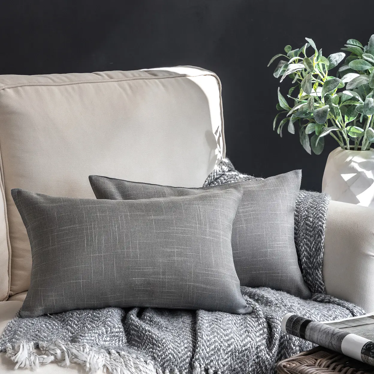 Phantoscope Throw Pillow Cover Soft Textured Lined Burlap Cushion Covers Pillowcase for Home Decor Car Sofa Couch Pack of 2 Light Grey 30 x 50cm