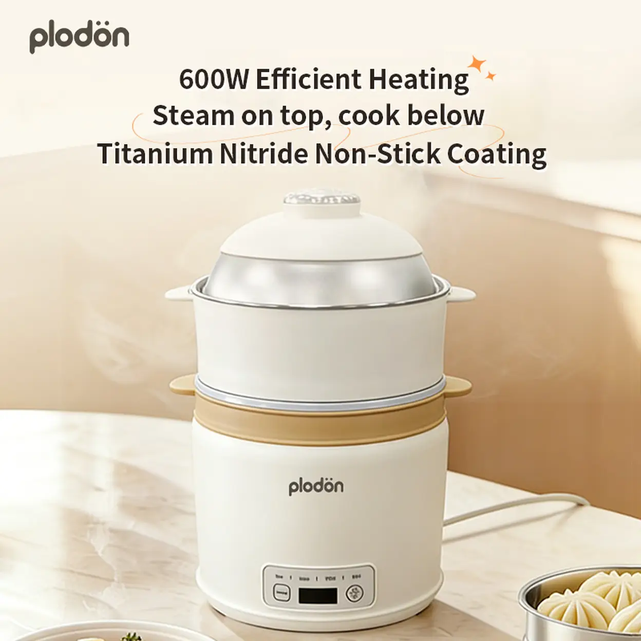 Plodon One Touch Rice Cooker with Steamer, 2.3L Non-stick Electric Cooking Pot Hot Pot, Auto Keep Warm, Multifunctional Cooker for Soup, Oatmeal , Rice, Noodles (with Rice Spoon and Measuring Cup)