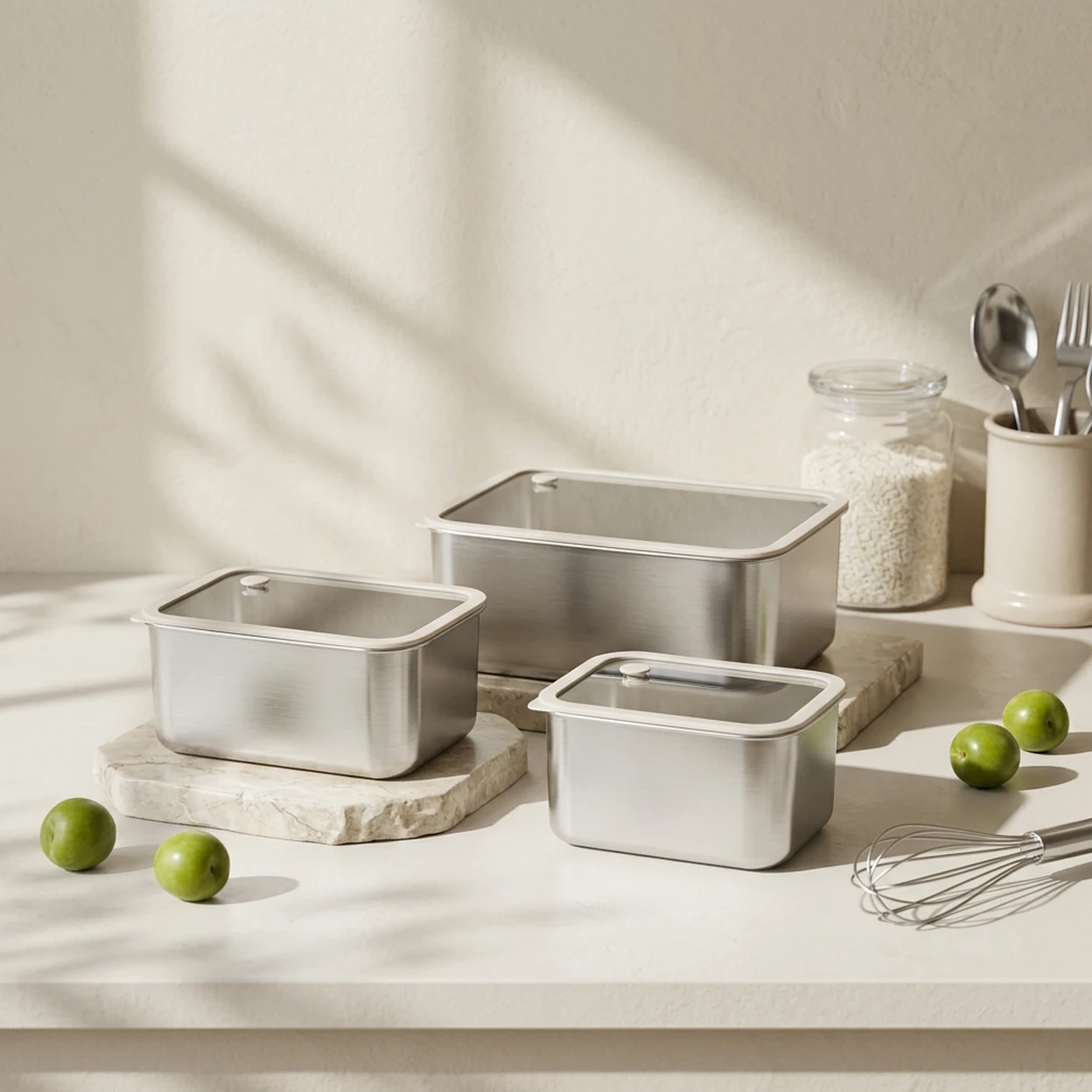 PURECOOK 304 Stainless Steel 3|Piece Deep Food Storage Container Set | Silicone Glass Lids