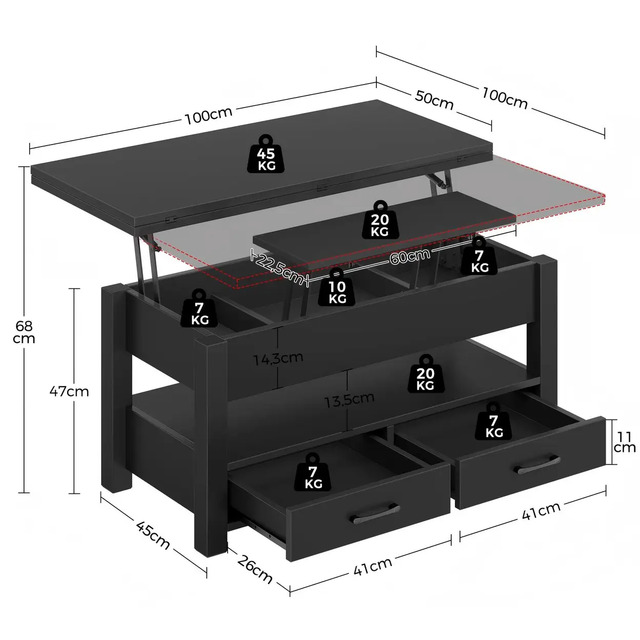 | Overall Dimensions | 100 x 50 x 48 cm (Extended height: 62 cm) |