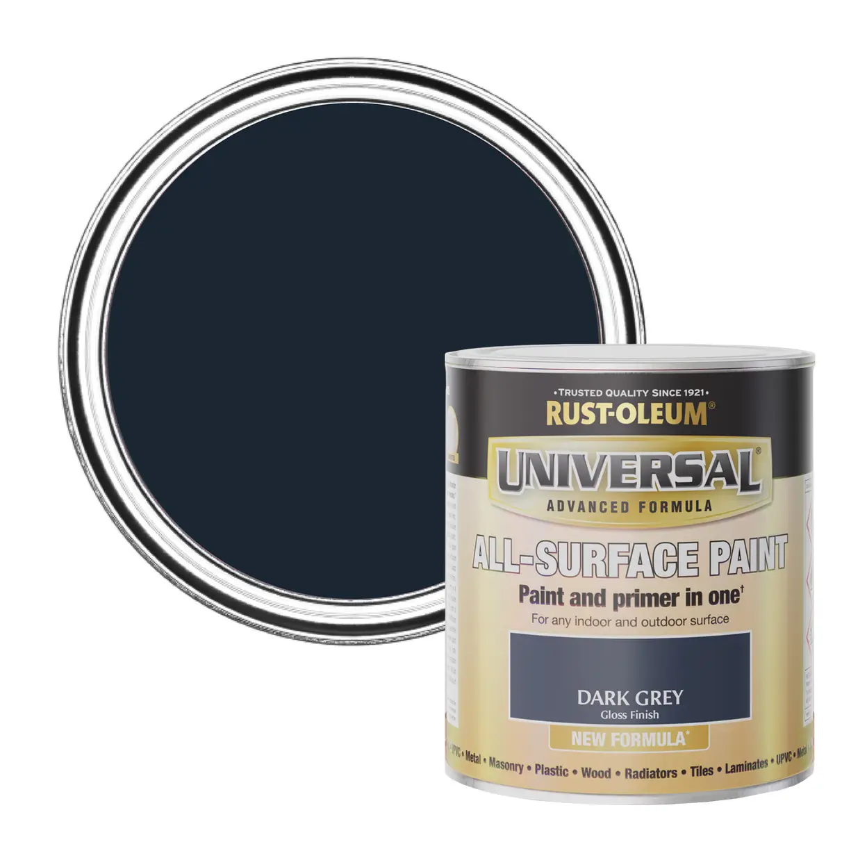 RUST-OLEUM UNIVERSAL ALL-SURFACE PAINT GLOSS DARK GREY 750ML