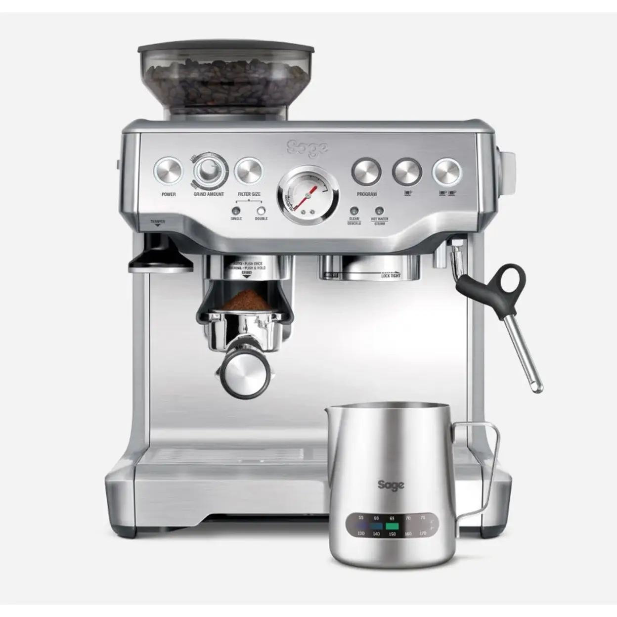 Sage the Barista Express with Temp Control Milk Jug, Manual Bean To Cup Coffee Machine, 16 Grind Setting, PID Temperature Control, Professional Steam Wand, Brushed Stainless Steel - BES875UK