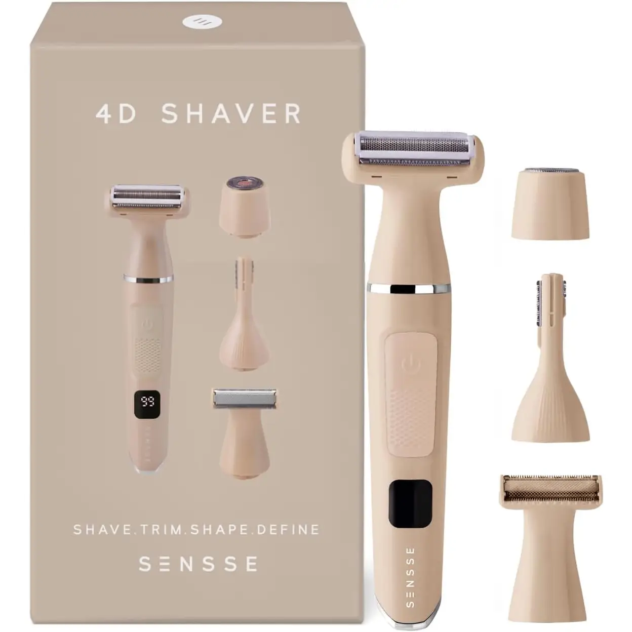 Sensse 4D Female Shaver, 4-in-1 Multi-Area Hair Removal for Face, Underarms, Legs, Bikini & Eyebrows – Cream