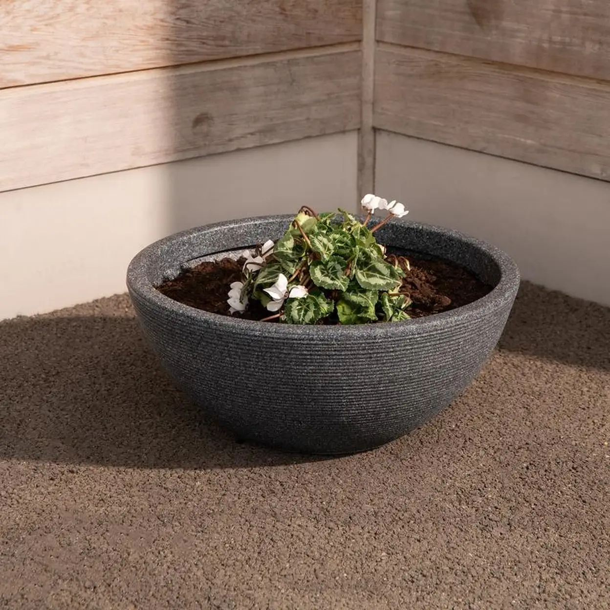 This pewter stone-effect planter introduces a sophisticated, modern tone to any indoor or outdoor space. Made from recycled plastic, it combines environmental consciousness with durability and everyday practicality. The pewter finish offers a cool, contemporary look that complements minimalist patios, monochrome balcony styling, and structured garden layouts. Despite its stone-like appearance, the planter remains exceptionally lightweight, making it simple to lift and reposition as needed. It is resistant to fading, cracking, and moisture damage, making it suitable for year-round outdoor use in changing weather conditions. The planter provides ample room for root development, supporting healthy plant growth for flowers, herbs, shrubs, or statement foliage plants. Whether used to frame a doorway, accent a patio seating area, or elevate a sunroom or conservatory interior, this planter enhances plant displays without overwhelming them. Ideal for gardeners and home decorators who appreciate clean, elegant design, this planter blends beauty, durability, and ease of use.