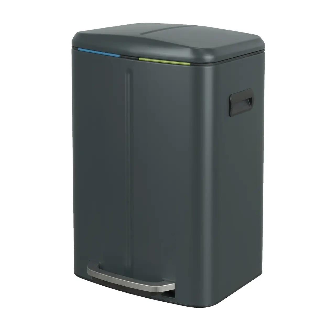 This elegantly designed kitchen bin transforms waste management with its dual compartments, effortlessly streamlining recycling tasks. The rust-resistant steel construction ensures both durability and an easy-to-clean surface, maintaining a pristine look. Its soft-closing lid operates quietly and can be held open for larger cleanups, enhancing convenience. Internally, removable buckets facilitate effortless cleaning, while a rear bag hole securely holds liners. With 15 custom-fit bags included, this bin set is ready to elevate your kitchen's functionality from the start.