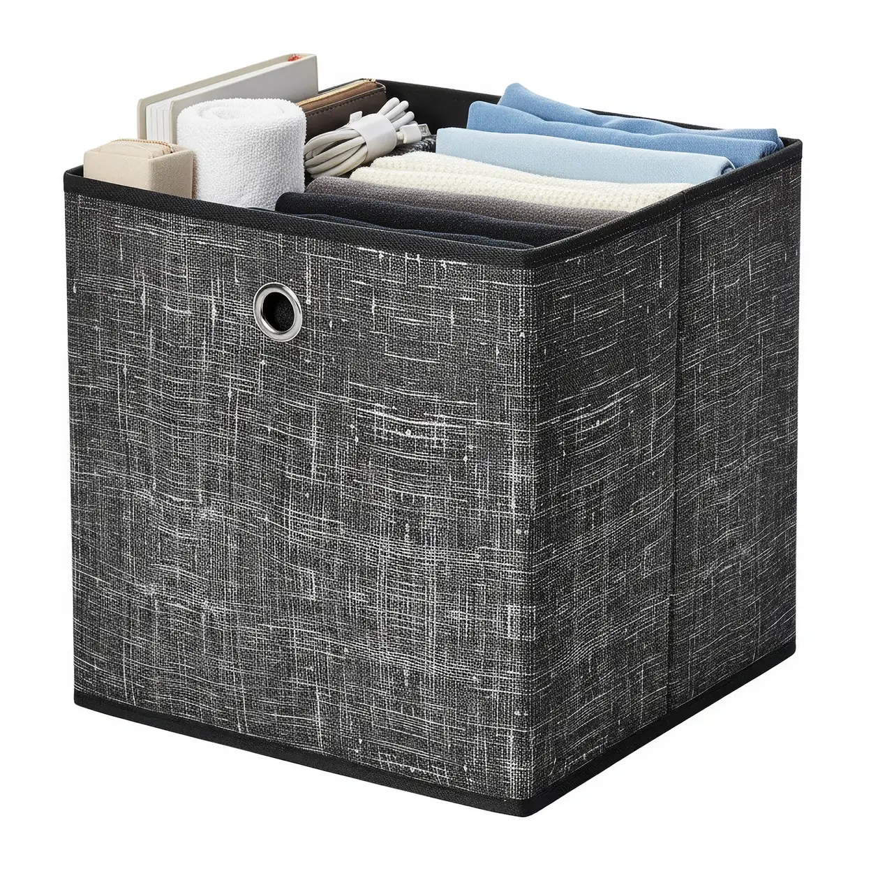 SONGMICSHOME Cube Organisers, Foldable Fabric Storage Boxes with Handles, Set of 6, for Shelves, Clothes, Black